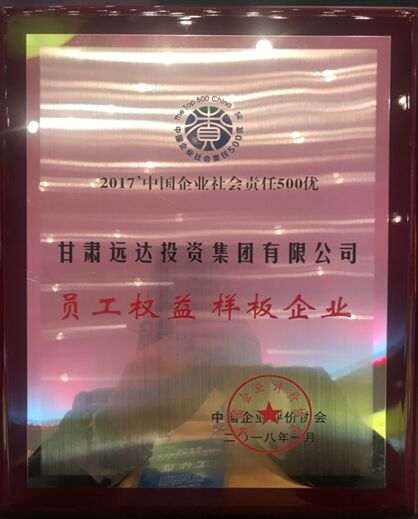 1月28日,在北京召開(kāi)的第十六屆中國(guó)企業(yè)發(fā)展高層論壇暨2017“中國(guó)企業(yè)社會(huì)責(zé)任500優(yōu)”評(píng)價(jià)報(bào)告發(fā)布會(huì)上傳來(lái)喜訊,遠(yuǎn)達(dá)集團(tuán)榮獲“2017中國(guó)企業(yè)社會(huì)責(zé)任500優(yōu)”,在單項(xiàng)評(píng)比中榮獲誠(chéng)實(shí)守信樣板企業(yè)第三名,員工權(quán)益樣板企業(yè)第七名。這一成績(jī)刷新了甘肅企業(yè)在該項(xiàng)評(píng)比中的記錄。