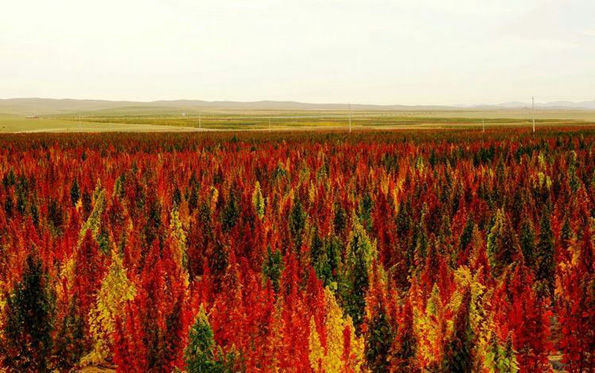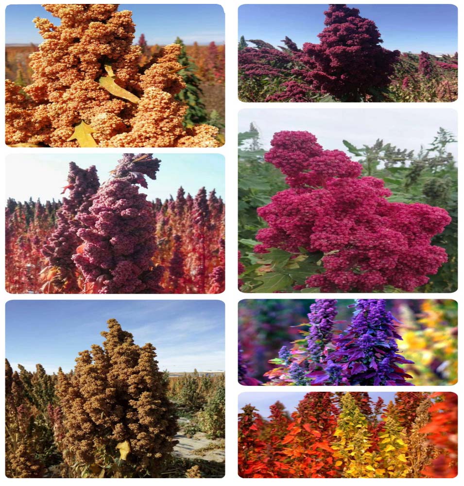 藜麥因品種不同而呈現(xiàn)不同的顏色,有酒紅色、玫紅色、粉紅色、綠色、黃色、橘黃色、金色、白色等,五彩斑斕,姹紫嫣紅,具有較高觀賞價(jià)值。