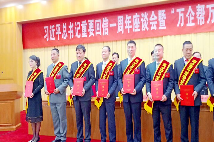 2019年10月17日,由全國工商聯(lián)、國務(wù)院扶貧辦在京召開貫徹落實習近平總書記重要回信精神座談會暨2019年全國“萬企幫萬村”精準扶貧行動先進民營企業(yè)表彰大會,甘肅遠達集團榮獲全國"萬企幫萬村"精準扶貧行動先進民營企業(yè)稱號,劉羽桐董事長出席表彰大會并接受表彰。